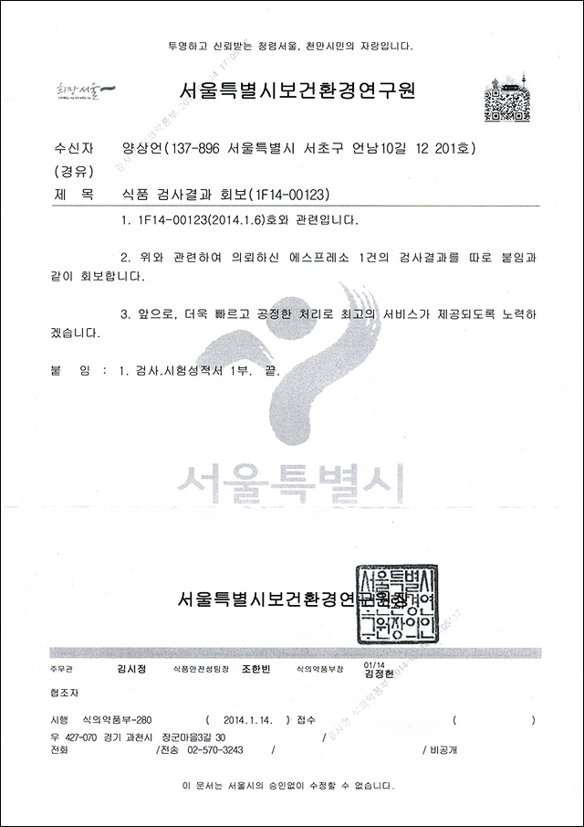 보건환경연구원 식품검사 회보 (2014) 페이지 정보 작성자 관리자 댓글 0건 조회 5,341회 작성일 14-01-22 10:09 본문 목록 답변 이전글시험 검사 성적서 (2014) 14.01.22 다음글트랜디 QR코드 13.09.26 댓글목록 댓글목록 등록된 댓글이 없습니다.