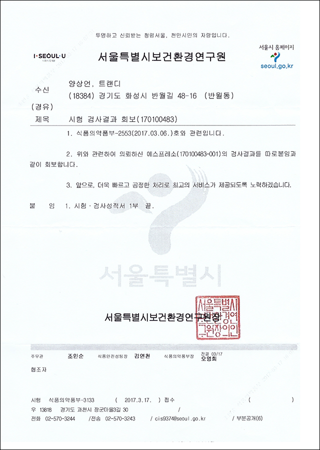 2017년 서울특별시 보건환경연구원 회보 페이지 정보 작성자 관리자 댓글 0건 조회 5,341회 작성일 17-04-06 23:48 본문 목록 답변 이전글2017년 시험 검사 성적서 17.04.06 다음글2016년 시험 검사 성적서 16.03.05 댓글목록 댓글목록 등록된 댓글이 없습니다.